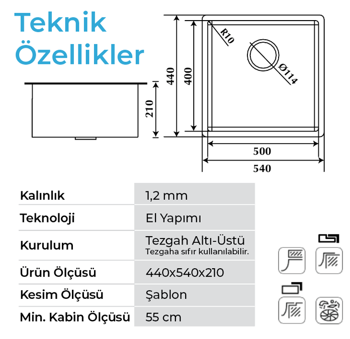 - Ölçüler: 50.00cm x 60.00cm x 25.00cm